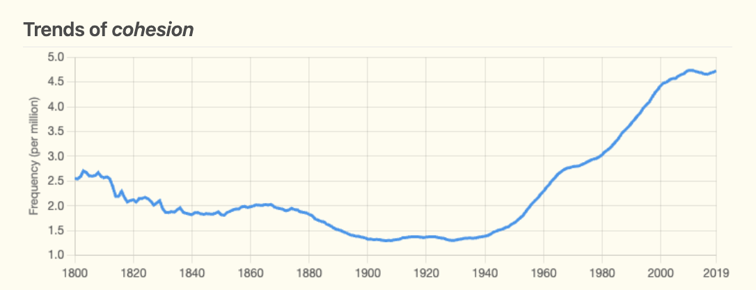 Historically, this is not surprising. The term cohesion rises distinctly in public usage after the Second World War and the Cold War that followed.